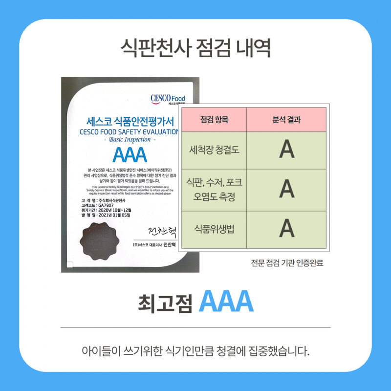 [식판천사] 식판천사는 전문업체를 통해 주기적으로 위생점검을 실시합니다!